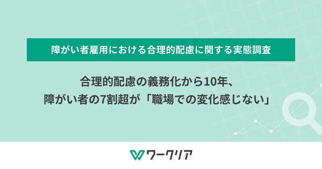 レバレジーズ株式会社が運営する障がい者就労支援サービス「ワークリア」( https://worklear.jp/ )は、2016年4月に民間企業の雇用分野における「合理的配慮の義務化」から10年を迎えることを受け、会社員として勤務している障がい者196名を対象に、障がい者雇用における合理的配慮に関する実態調査を実施しました。