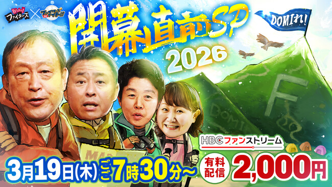 北海道放送株式会社(HBC)は、2026年3月19日(木)19:30より、『Bravo!ファイターズDEナイト ~HBC野球解説陣が忖度なしに大胆予想!開幕直前SP~』をHBCファンストリームにて配信いたします。