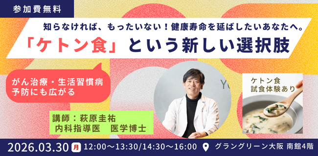 【取材案内】がん研究から生まれた「ケトン食」の社会実装 大阪大学発ベンチャーが挑む“ケトン食インフラ” グラングリーン大阪で医師による健康イベント開催 3/26・ 3/30