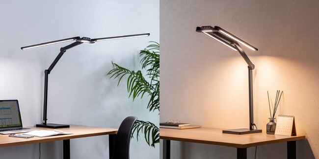 最大1650ルーメンの高照度に対応し、仕事や細かな作業、勉強にも十分な明るさを確保できます。さらに、明るさは5段階、光の色は電球色から昼白色まで5段階で調整可能。集中したい時は白っぽい光、リラックスしたい時はあたたかみのある光へと切り替えられるため、時間帯や用途に合わせた理想のデスク環境を手軽に整えられます。