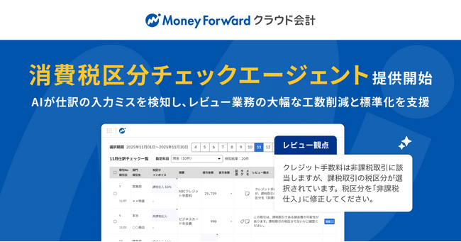 『マネーフォワード クラウド会計』、AIエージェント「消費税区分チェックエージェント」を一部の士業事務所向けに提供開始