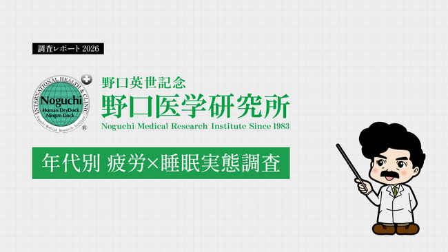 株式会社野口医学研究所(所在地:東京都港区、代表取締役社長:堤 大造)は、「こころに寄り添う美と健康を」の理念のもと、健康食品・サプリメントの製造を通じて人々の健康をサポートしています。同社は、現代人が抱える睡眠・疲労・腸内環境の課題に着目し、2026年3月18日の「睡眠の日」に合わせ、全国の男女1,800名を対象に「年代別疲労×睡眠実態調査2026」を実施しました。