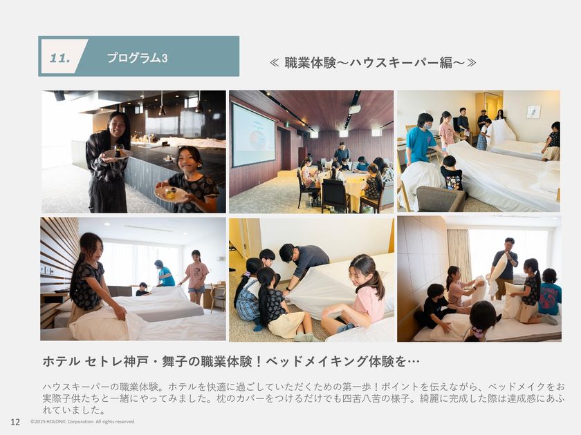 第1期生は、約100名の応募の中から32名が参加し、ホテル探険や職業体験、外部講師による体験プログラムなどを実施。子どもたちはホテルの裏側を知り、スタッフやシェフの仕事を体験しながら、社会や仕事への理解を深めています。