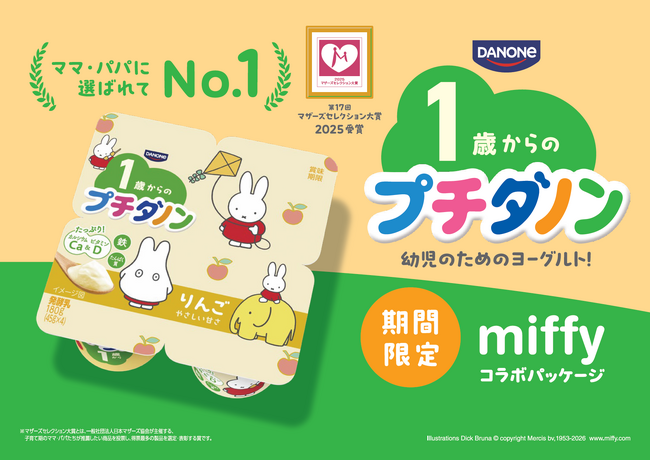 ダノンジャパン株式会社(本社:東京都目黒区、代表取締役社長:ロドリゴ・リマ、以下ダノンジャパン)は、幼児のためのヨーグルト「プチダノン」より、新たにミッフィーとコラボレーションしたパッケージを2026年3月下旬から期間限定で発売します。また、昨年よりご好評いただいている赤ちゃんのためのヨーグルト「ベビーダノン」のミッフィーコラボパッケージも、引き続きお楽しみいただけるよう展開期間を延長します。