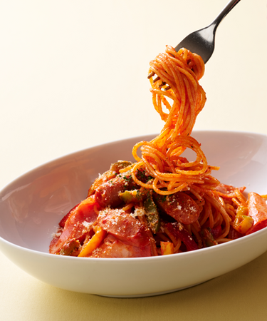 完熟トマトだけを使用し、よりコク深く濃厚な味わいに仕上げたナポリタン。