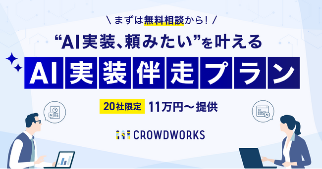 “AI実装、頼みたい”を叶える クラウドワークス、20社限定・11万円~「AI実装伴走プラン」を提供