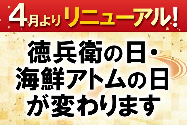 徳兵衛の日、海鮮アトムの日が4月からリニューアル!アトムアプリ共通来店ポイント3倍も実施!