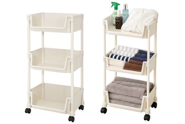 脱衣所・キッチン・ベビーグッズの整理にも!どこでもスイスイ「中身が見やすい3段ワゴン」が4月新発売