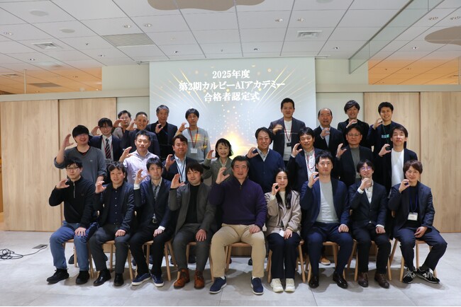 カルビー株式会社(本社:東京都千代田区、代表取締役社長兼CEO:江原 信、以下、カルビー)は、” AI技術と問題解決手法”に特化した実践型カリキュラム『カルビーAIアカデミー』を開講しております。今年度の最終報告会を2026年3月17日(火)に行い、新たに5人をDX人財として認定しました。今後もDX人財の育成を加速してまいります。
