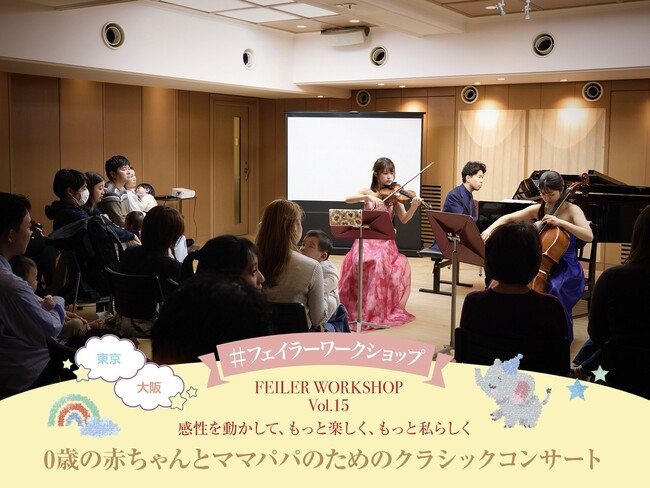 今回で15回目となる第15弾では、2026年3月19日(木)発売予定のベビーの新作『トゥインクルトゥインクル』、『ブルームブルーム』の発売を記念して、0歳の赤ちゃんとママパパのためのクラシックコンサートを東京と大阪で開催。日頃お忙しいママパパに、赤ちゃんと一緒にほんものの音楽を体験できる機会をお届けできればと、世界的に活躍中の若手実力派によるピアノトリオの生演奏をお楽しみいただきました。東京19組、大阪14組のご家族にご参加いただき、本格的なクラシック音楽に間近でふれていただいたコンサートの様子をご紹介します。