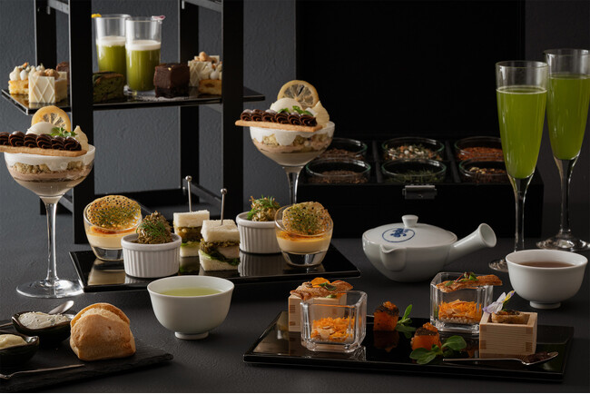 スイーツには、燻されたときに生まれるスモーキーな香りが特長のいり番茶を忍ばせたミルクチョコレートのテリーヌに黒豆入りの練り羊羹を合わせた一品をはじめ、重厚なベイクドチーズケーキにきなこのムースを重ね、和紅茶の穏やかな渋みと軽やかな香りをまとわせたクランブルをアクセントにしたメニューなどをラインナップしました。