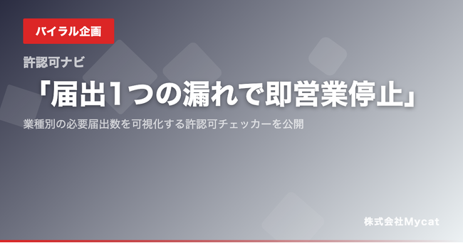 株式会社Mycatは、AIで業種別に必要な届出・許認可を一括チェックできる「許認可チェッカー」を許認可ナビ(https://kyoninka.xyz)に新たに公開しました。