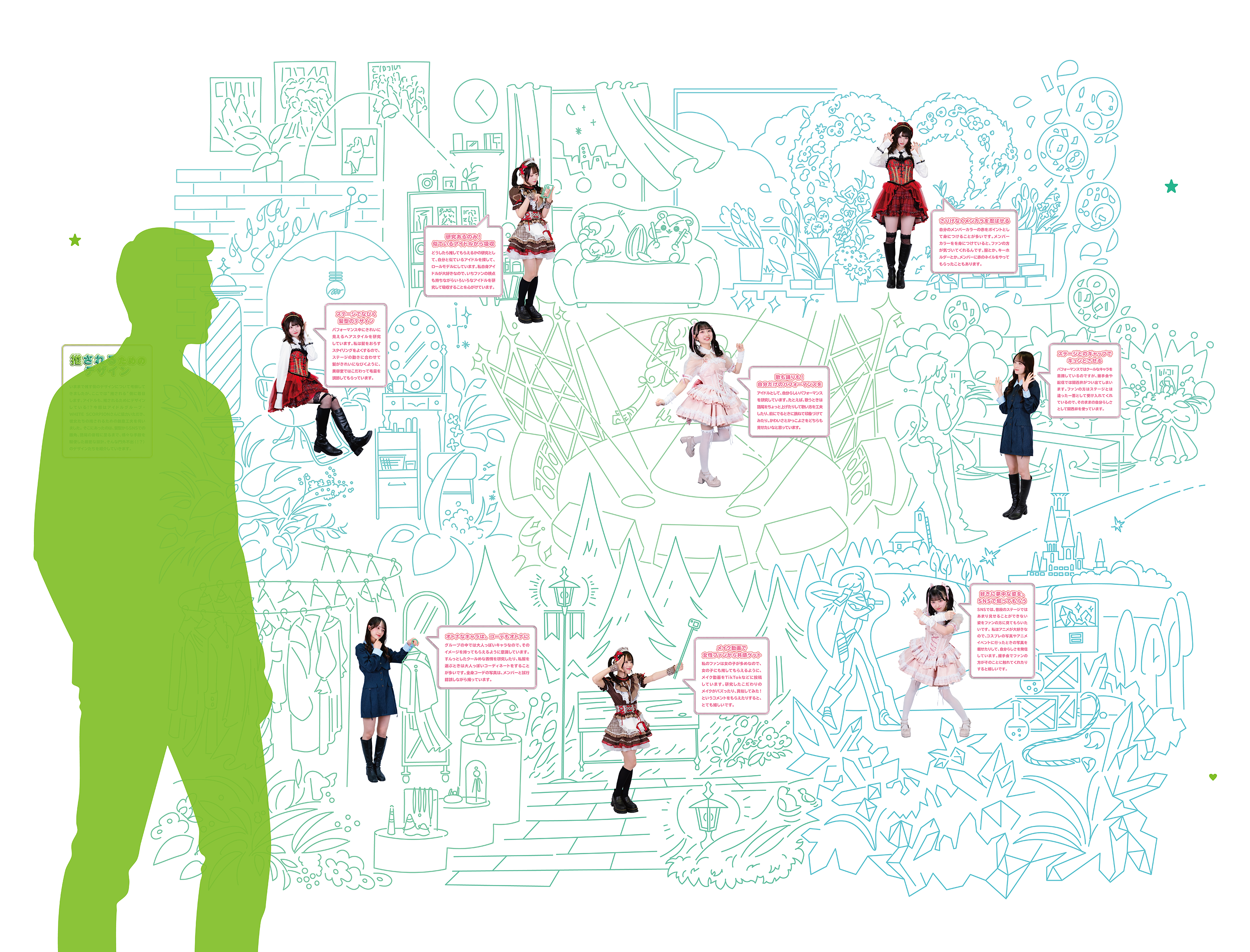 推す側のデザインではなく、”推される”側にも着目します。アイドルも、推されるためにデザインしている!?今回はアイドルグループ・WHITE SCORPIONに協力いただき、彼女たちの推されるための創意工夫を伺いました。