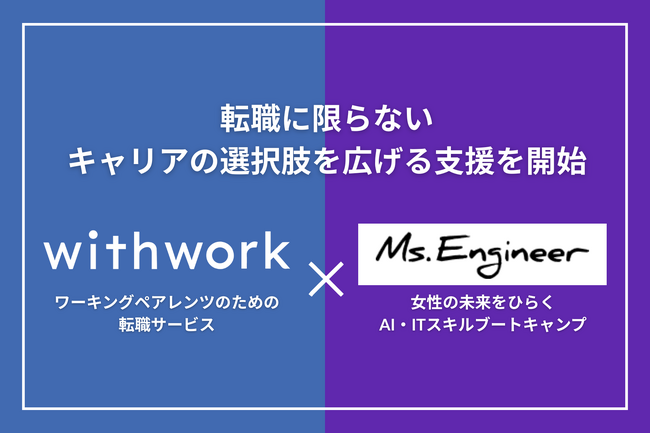 ワーキングペアレンツ向け転職サービス「withwork」、女性の未来をひらくAI・ITスキルブートキャンプ「Ms.Engineer」と連携