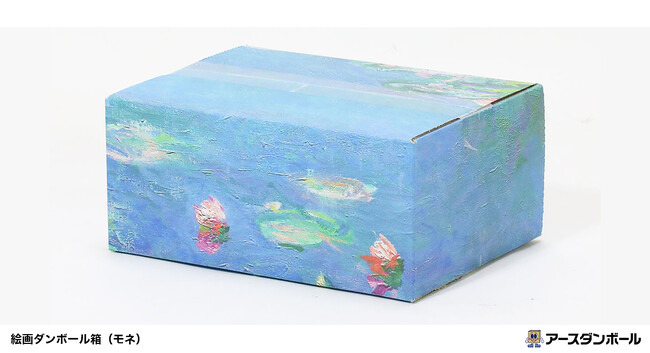 睡蓮をはじめ、クロード・モネの絵画作品がダンボール箱になって新登場。ダンボール箱をキャンバスに見立て、アースダンボール独自のフルカラー印刷で絵画を再現。