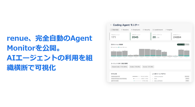 renue 完全自動のAgent Monitorを公開。AIエージェントの利用を組織横断で可視化
