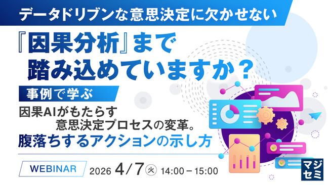 マジセミ株式会社は「データドリブンな意思決定に欠かせない『因果分析』まで踏み込めていますか?」というテーマのウェビナーを開催します。