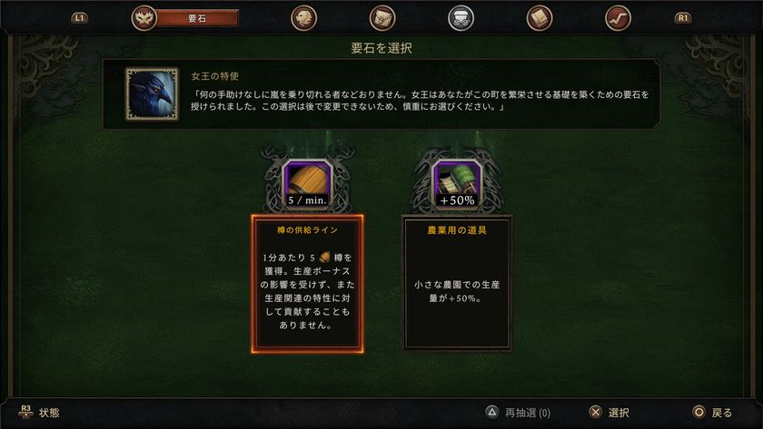 女王の命を受けた「総督」として、人間、ビーバー、リザード、キツネ、ハーピーを率いて荒野を開拓しよう。