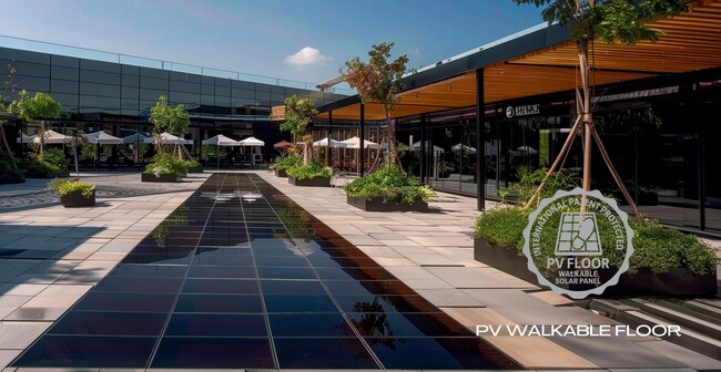 「PV floor」は、これまで屋根が中心であった太陽光発電パネルの設置場所を、床面・テラス・屋外デッキ・広場などの歩行空間へ拡張する新しい発電ソリューションです。デザイン性と耐久性を兼ね備えたパネルにより、商業施設、ホテル、オフィス、公共空間など幅広い場所で再生可能エネルギーの活用を可能にします。