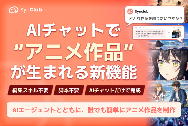 【SynClub、AIチャットで“アニメ作品”が生まれる新機能】アニメショート動画生成機能『アニショート』リリースのお知らせ