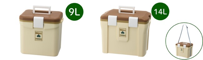 コンパクトで使いやすい9Lサイズと日帰りキャンプや家族でのお出かけにも使いやすい14Lの2サイズ展開で、シーンに合わせてお選びいただけます。飲み物や軽食を入れるのに最適な9Lサイズには、500mlペットボトル4本と、350ml缶が4本収納でき、少人数でのお出かけや、サブクーラーとしても活躍します。14Lサイズは、500mlペットボトルが12本収納でき、ドリンクに加えて食材も収納できるゆとりがあるほか、フタは簡単に取り外せる仕様のため、使用後のお手入れや庫内の掃除もスムーズに行えます。また、手持ちに便利なハンドルに加え、肩掛けベルトも付属しているので、快適に持ち運べます。