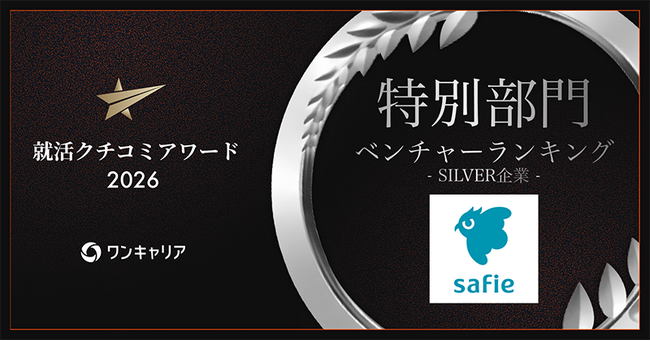 クラウド録画サービスシェアNo.1(※1)のセーフィー株式会社(本社:東京都品川区、代表取締役社長CEO:佐渡島 隆平、以下「セーフィー」)は、就活支援サービス「ワンキャリア」を運営する株式会社ワンキャリア(本社:東京都渋谷区、代表取締役社長 執行役員CEO:宮下 尚之、以下「ワンキャリア」)が主催する「ワンキャリア 就活クチコミアワード2026」のベンチャーランキングにおいてシルバー賞を獲得したことをお知らせします。
