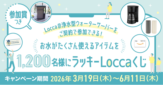 良質な水を育む日本有数の水源地から採取した天然水を、おいしさもミネラル分もそのままに保つ非加熱処理を施しご家庭に提供しているプレミアムウォーター株式会社(所在地:東京都渋谷区、代表取締役社長:金本 彰彦)は、『参加賞つき!ラッキーLoccaくじ』を2026年3月19日(木)から開始いたします。