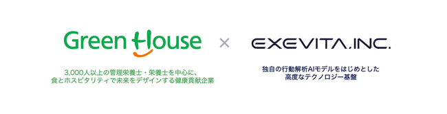 株式会社グリーンハウス(本社:東京都新宿区、代表取締役社長:田沼 千秋、以下「グリーンハウス」)とエグゼヴィータ株式会社(本社:神奈川県横浜市、代表:多田 洋史、以下「エグゼヴィータ」)は、グリーンハウスグループに多数在籍する「栄養士のノウハウ」と多様な「食事提供シーン」に、エグゼヴィータが独自に開発を進める「習慣解析AIモデル」を掛け合わせ、働く世代のコンディションを最適化することで健康経営をサポートする、新たなサービスの共同開発を開始しました。
