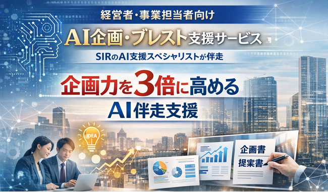 本サービスは、新規事業開発、商品・サービス企画、戦略立案、提案構想などを対象に、SIRのAI支援スペシャリストが伴走し、企画立案の質とスピードの向上を支援するものです。