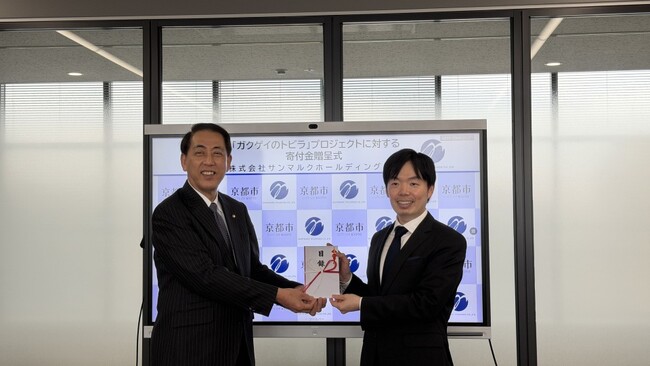 京都市教育委員会(事務局:京都市中京区、教育長:稲田 新吾)が、市内の子どもたちの将来に向けた学びと、伝統産業などの後継者育成に向けたきっかけ創りを推進するプロジェクトである「ガクゲイのトビラ」に対して、株式会社サンマルクホールディングス(本社:岡山市北区、代表取締役社長:藤川 祐樹、以下「サンマルクHD」)は、当プロジェクトに対する企業版ふるさと納税の第1 号として寄付金を贈呈することとしました。