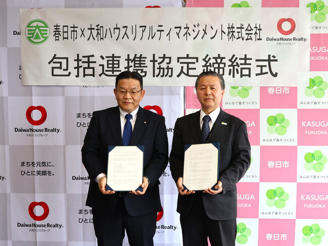大和ハウスグループの大和ハウスリアルティマネジメント株式会社(本社:東京都千代田区、代表取締役社長:伊藤光博)は、当社が運営する「アクロスモール春日」の所在する自治体である福岡県春日市と、地域産業等の振興、子育てや青少年健全育成などの分野において連携する「包括的連携に関する協定書」を本日2026年3月19日(木)に締結し、同日に締結式を執り行いました。