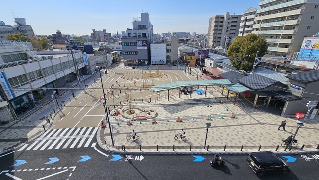 服部天神駅前広場が完成 地域の新たな顔に
