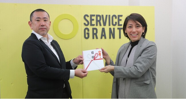 本活動にご参加いただいた皆さまの笑顔によって集められたポイントは、寄付金として換算され、日本における職業上の経験やスキルを活かして取り組む社会貢献活動「プロボノ」の草分けとして活動し、はたらく人の専門性を社会に役立てながらキャリアの可能性を広げる認定NPO法人 サービスグラントに寄付いたしました。