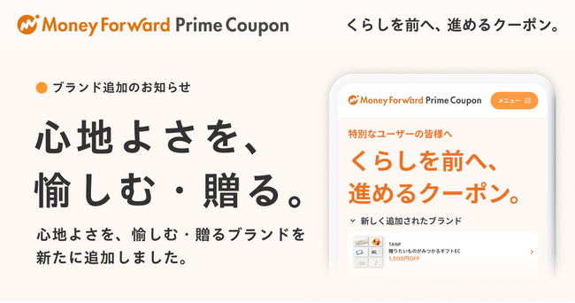 『マネーフォワード ME』プレミアム会員向け「Prime Coupon」、「心地よさを、愉しむ・贈る。」をテーマに新たな提携ブランドを追加
