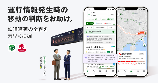 ~迂回ルートをAIが解説する機能や、運行情報のタイムライン表示・PUSH通知など、遅延発生時の直感的な状況把握と意思決定をサポート~
