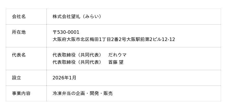 株式会社望礼(本社:大阪府大阪市、共同代表:だれウマ、首藤望)は、総フォロワー355万人の料理研究家・だれウマが自ら起業し立ち上げた冷凍弁当ブランド『ごちそうShape』を本格展開します。2026年3月20日(金)より、CAMPFIREにてクラウドファンディングを開始いたします。