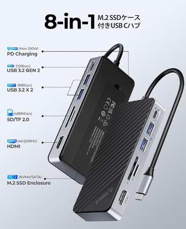 デスク周りがこれ1台で完結!M.2 SSDスロット搭載の「ORICO 8-in-1 USB-Cハブ」が今だけ36%OFF