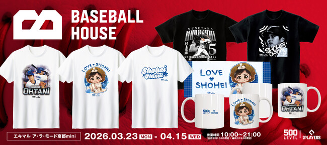 エキマル ア・ラ・モード京都miniにて POPUP SHOP「BASEBALL HOUSE」を期間限定開催いたします。BASEBALL HOUSEは、日本人メジャーリーガーのグッズを中心に展開するポップアップストアです。注目選手のアイテムや、日本では入手困難な輸入商品など、野球ファン必見のラインナップを取り揃えています。