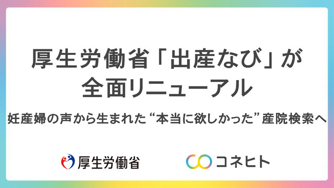 コネヒト株式会社(本社:東京都中央区、代表取締役 杉井信一郎、以下「コネヒト」)は、厚生労働省より令和7年度分娩取扱施設情報提供ウェブサイト「出産なび」の更改および保守・運用業務を受託し、システムおよびUI/UXの全面リニューアルを実施したことをお知らせいたします。