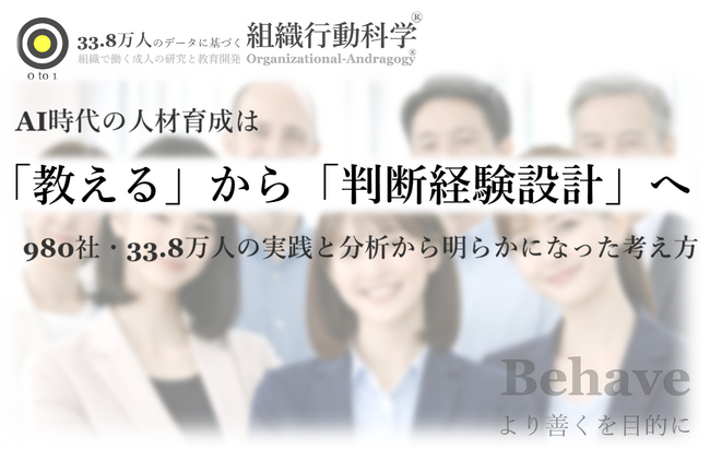 AI時代の人材育成は「教える」から「判断経験設計」へ:980社・33.8万人の実践と分析から明らかになった考え方のレポートを公開(組織行動科学(R))