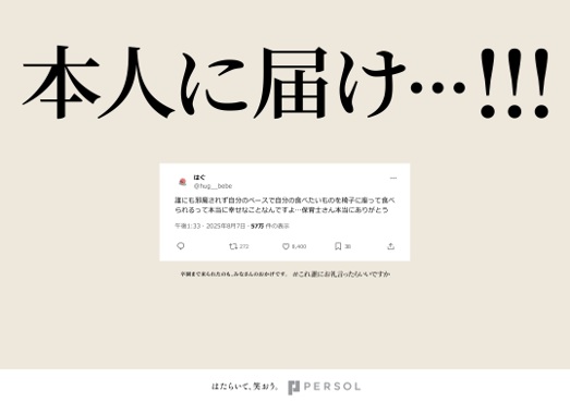 「はたらいて、笑おう。」をグループビジョンに掲げるパーソルホールディングス株式会社(本社:東京都港区、代表取締役社長 CEO:和田 孝雄)は、「#これ誰にお礼言ったらいいですか」プロジェクトにおいて、2026年3月23日(月)~4月5日(日)(※掲出駅によって異なります。)の期間、駅中や駅近に保育園がある全国24箇所の駅に、保護者から寄せられた声をもとに保育関係者への名もなきお礼を代行する“お礼広告”を掲出します。