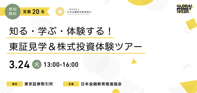 金融リテラシーの重要性が高まる中、東証見学や株式投資体験、おこづかいをテーマにしたセミナー、学生による情報発信プロジェクトを、3月24日~25日に無料で実施します。