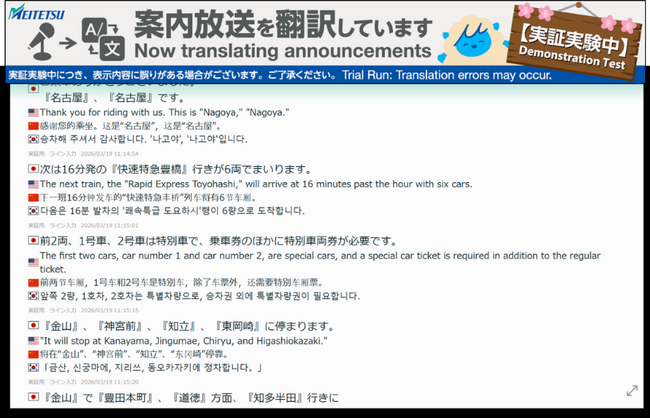 ~駅の音声放送が見える~ 名鉄名古屋駅で音声認識によるリアルタイム翻訳モニター案内の実証実験を実施します