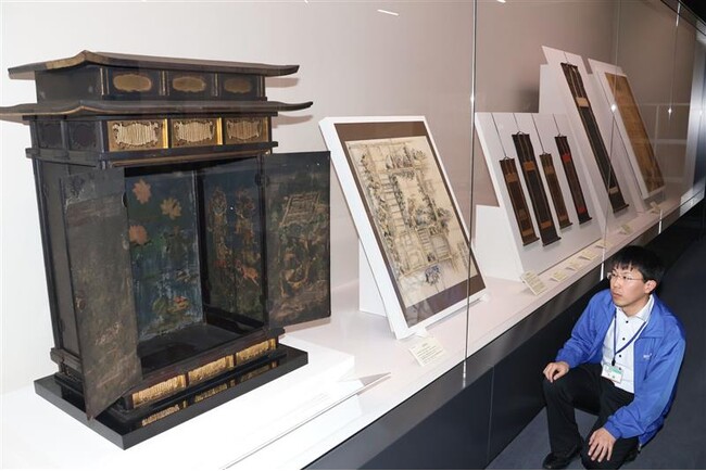 今回は、照明も駆使し、細密に描かれた厨子絵をじっくり見ることができる。大廣学芸員は「厨子の内部に観音浄土の世界がここまで緻密に美しく描かれているのは驚き。ぜひ、この機会にご覧いただき700年以上前の南都仏画の世界を感じていただきたい」と話している。
