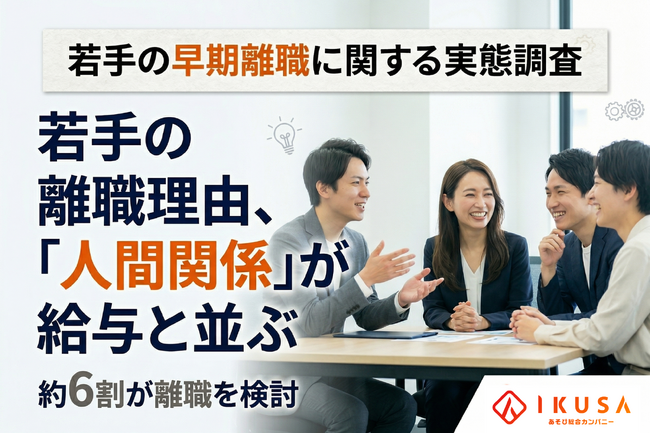 体験型イベントで企業の課題を解決する株式会社IKUSA(本社:東京都豊島区、代表取締役:赤坂大樹、以下IKUSA)は、社会人1~3年目の若手社員400名を対象に「新人・若手の早期離職に関する実態調査」を実施いたしました。