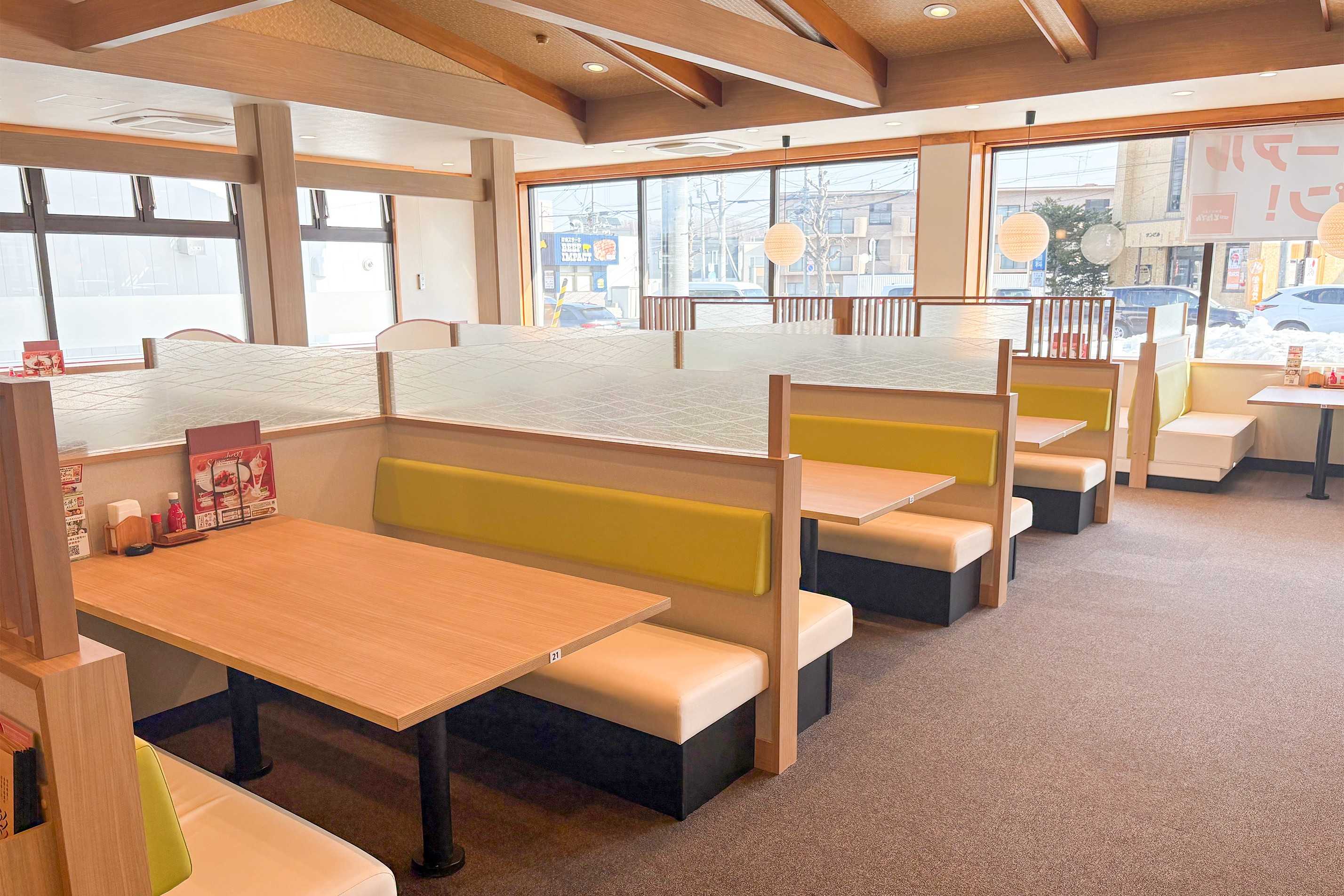 店内は、おひとり様から大人数様まで、居心地が良く、誰もがゆったりとくつろげる空間に改装しました。各席テーブルの間隔を広げたことで、ベビーカーをお持ちのお客様や車いすをご利用のお客様にもこれまで以上にゆったりとご利用いただけます。