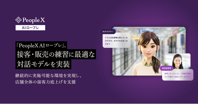 採用から活躍支援まで、AIで人事課題を解決する株式会社PeopleX(本社:東京都新宿区、代表取締役CEO:橘 大地、以下:当社)は、当社が提供する対話型AIロープレサービス「PeopleX AIロープレ」について、より最適な対話モデルの下での接客ロールプレイング(接客ロープレ)の実施が可能となったことをお知らせいたします。