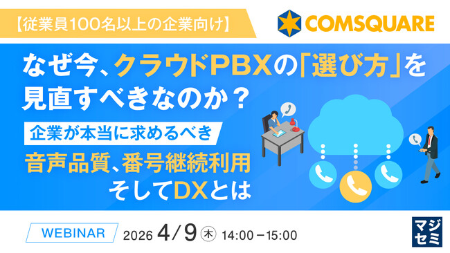 マジセミ株式会社は「【従業員100名以上の企業向け】なぜ今、クラウドPBXの「選び方」を見直すべきなのか? 」というテーマのウェビナーを開催します。