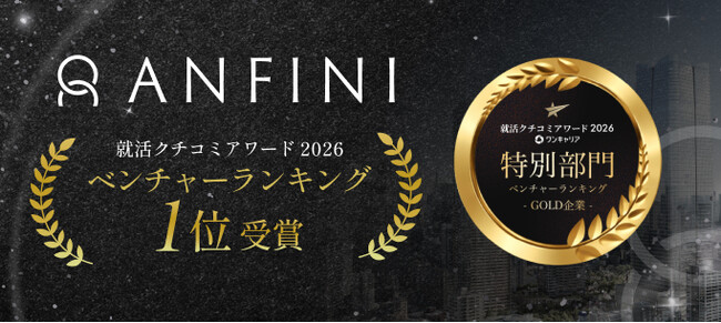 AI統合型経営コンサルティングを展開する株式会社Anfini(本社:東京都港区、代表取締役:橋本 純)は、「ワンキャリア 就活クチコミアワード2026」において、「ベンチャーランキング」第1位を獲得しました。