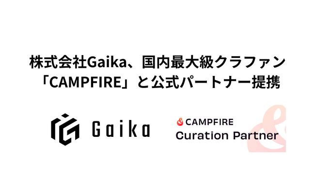 株式会社Gaika(本社:東京都港区、代表取締役社長 兼 CEO:坂本大地、以下「Gaika」)は、国内最大級のクラウドファンディングプラットフォーム「CAMPFIRE」を運営する株式会社CAMPFIREと公式パートナー契約を提携したことをお知らせいたします。